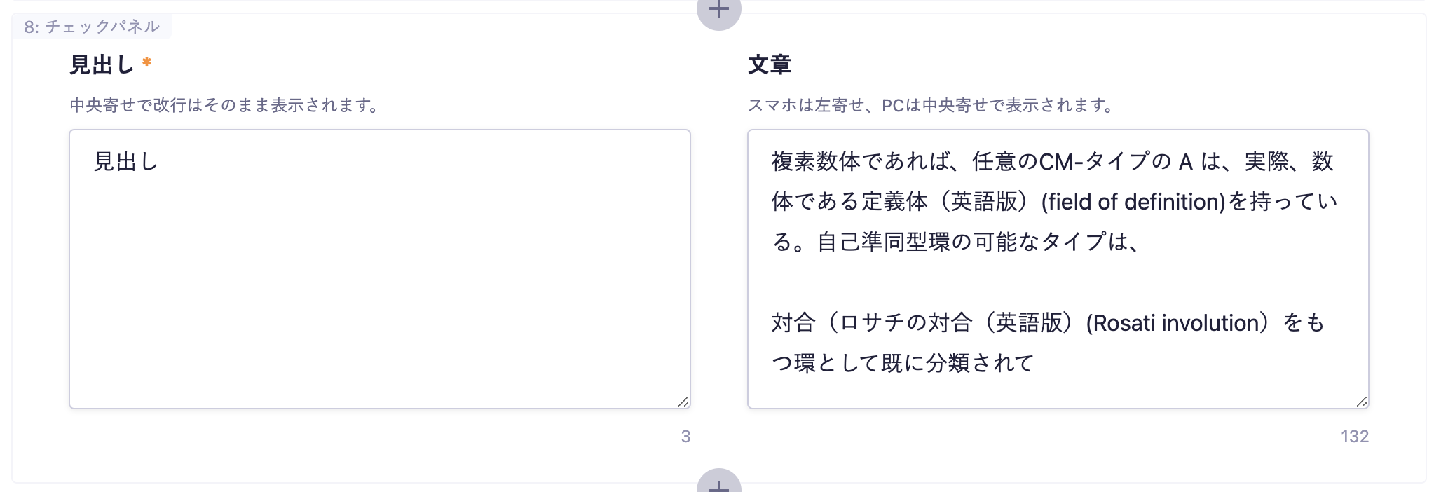 こちらも見出しと本文を入れていくだけのシンプルな設定です。
